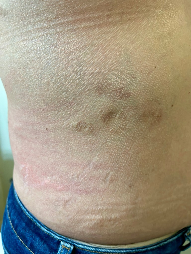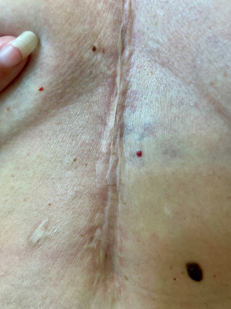 Chris and I wanted to share pics of my scars. They are daily reminders of all I went through physically and all we both went through emotionally. The physical scars may have healed, but our internal scars are still raw. I’m not sure how long those will take to heal, if ever. I told Chris last night that I don’t remember a lot from the actual hospitalizations now. I think my brain must’ve tried to cover up the trauma of everything.